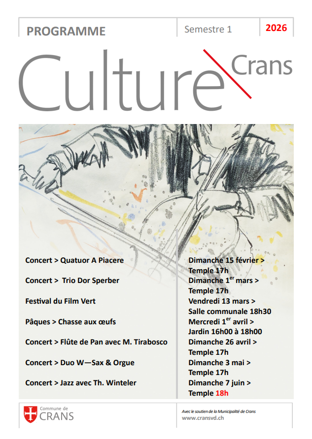 Nous avons le plaisir de vous relayer le programme culturel de Crans pour le premier semestre 2026.